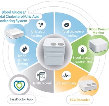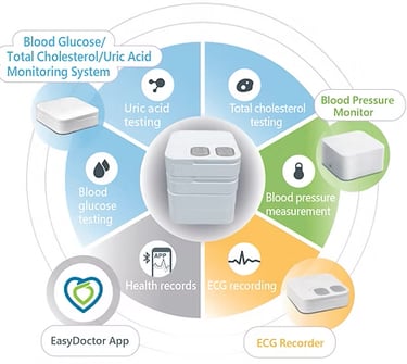 An award-winning medical-grade self-diagnosis screening kit that integrates 5 physiological measurement devices in one compact and stylish unibody.
